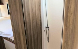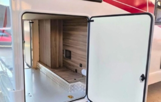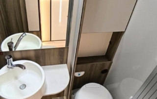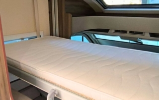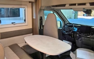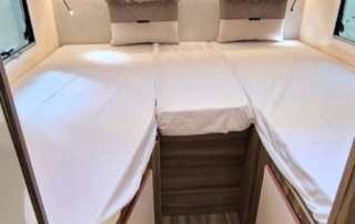 Autocaravana perfilada compacta de 6,69m de longitud y 2,15m de ancho. Camas gemelas, cama basculante individual y salón convertible en cama.